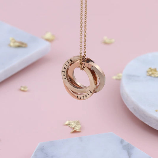 Custom Interlocking Circle Necklace – Engraved Name Pendant